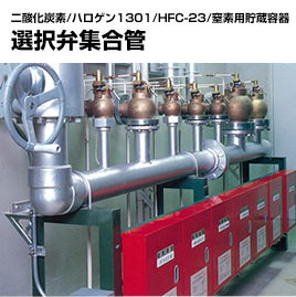 貯蔵容器は、容器内部を入念に洗浄したものを使用。また、容器弁は消防庁長官の定めた告示基準に適合したもの(認定合格品)を使用しています。尚、貯蔵容器の開放は、ガス圧(二酸化炭素)起動方式ですが、手動でも開放できる構造になっています。